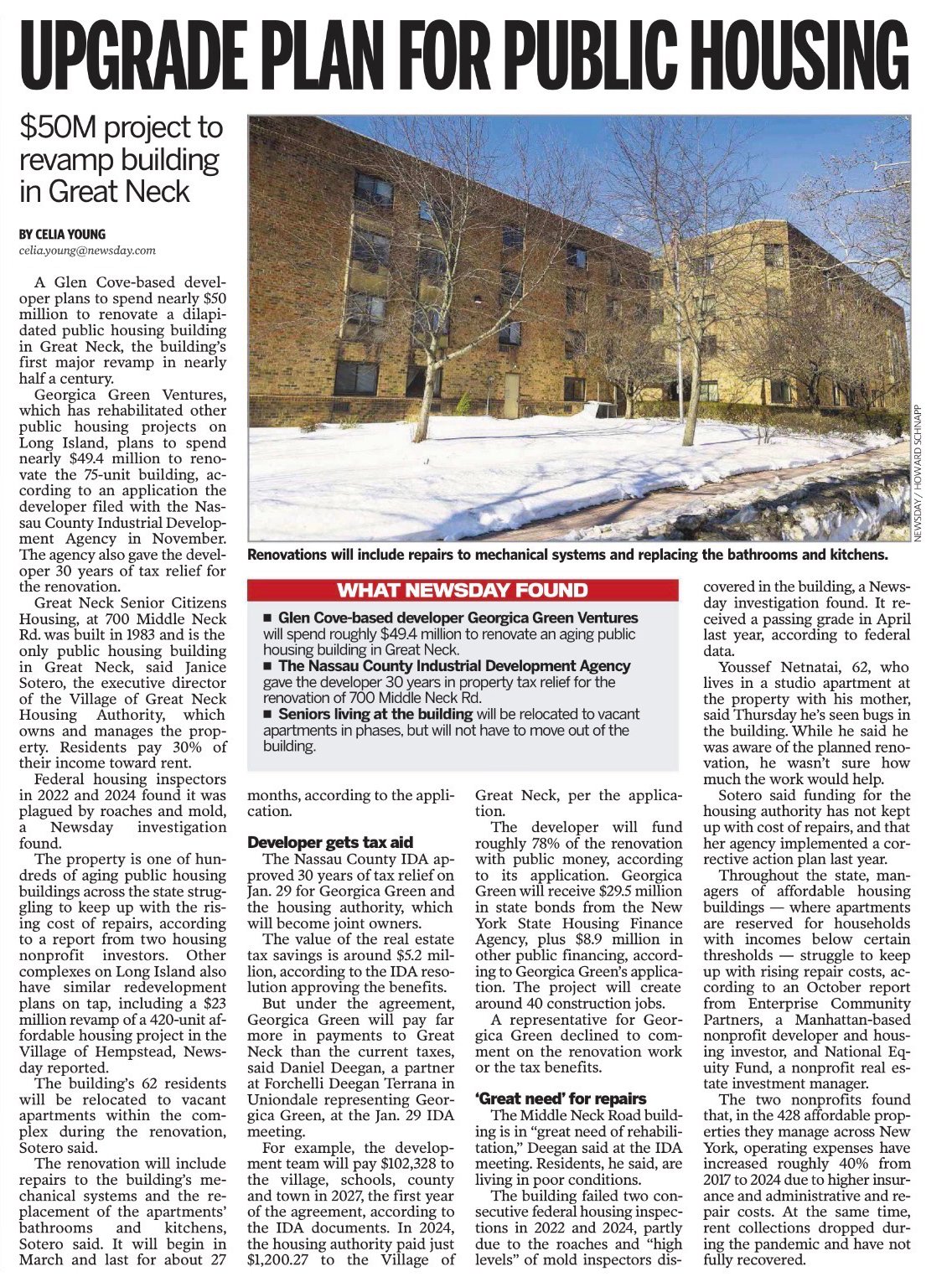 NEWSDAY REPORTS ON UPGRADE PLAN FOR GREAT NECK PUBLIC HOUSING