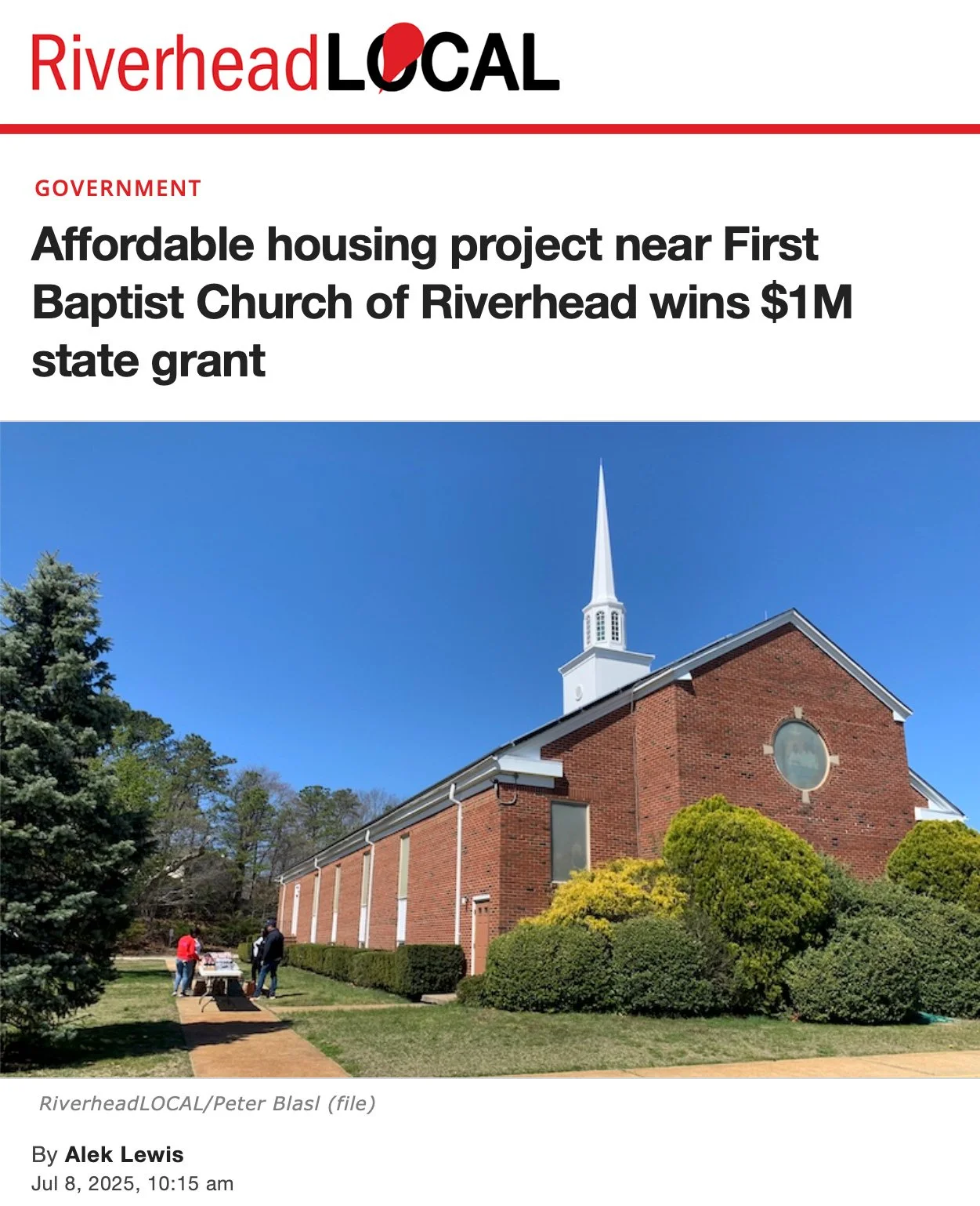Transformative partnership with First Baptist Church of Riverhead to revitalize underutilized land into a vibrant community that delivers affordable housing, supportive services, and community benefits.